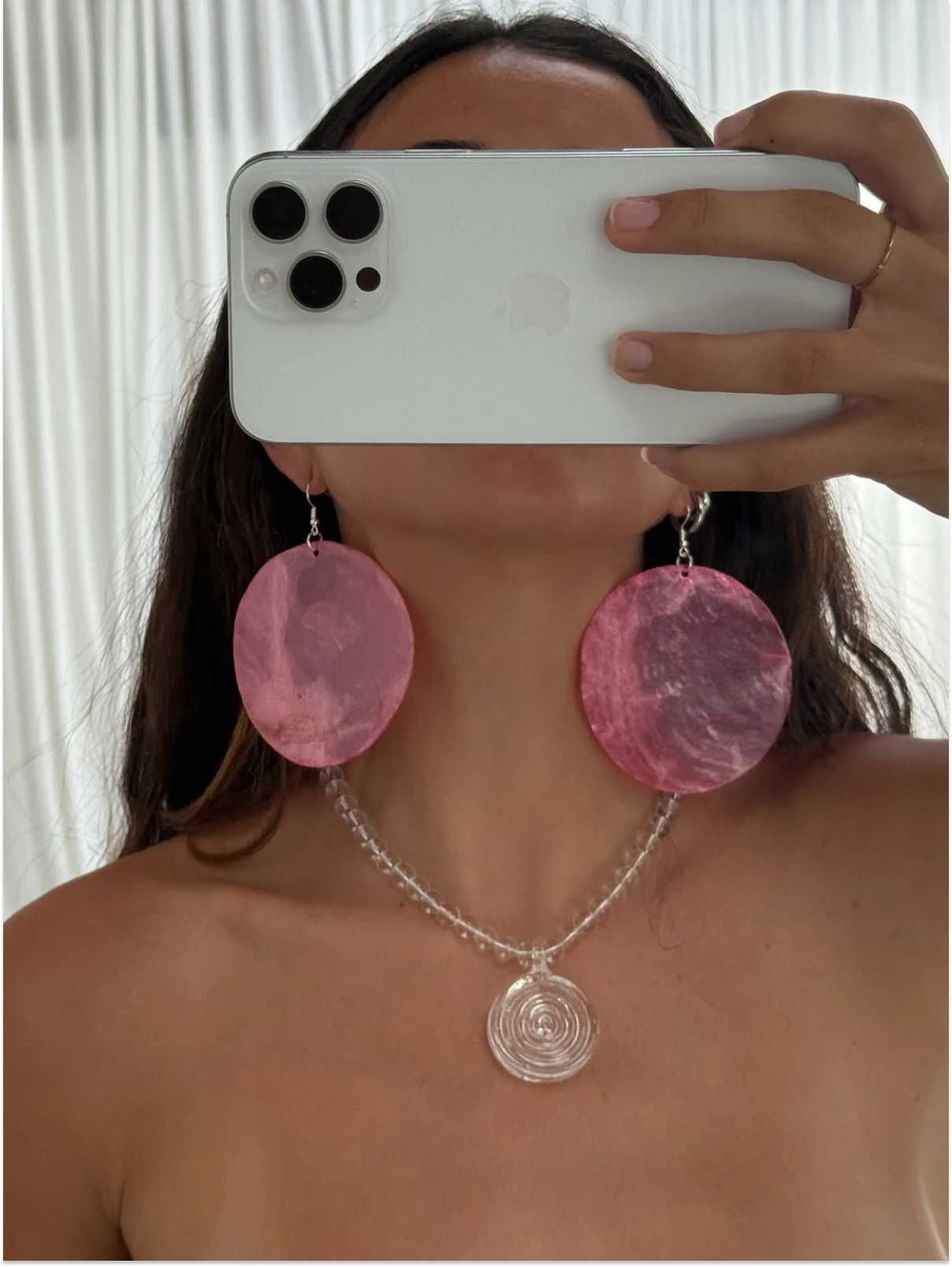 Crafted from radiant nacar, Teresa earrings reflect the warm glow of the Mediterranean sun